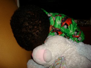 We boarded the train and Carlos got to fill out a letter to Santa who we heard might be making an appearance. Carlos was a little grumpy because he didn’t have a nap and of course fell asleep in the car on the way. He simply was not going to let me take his picture. But I tried anyway!