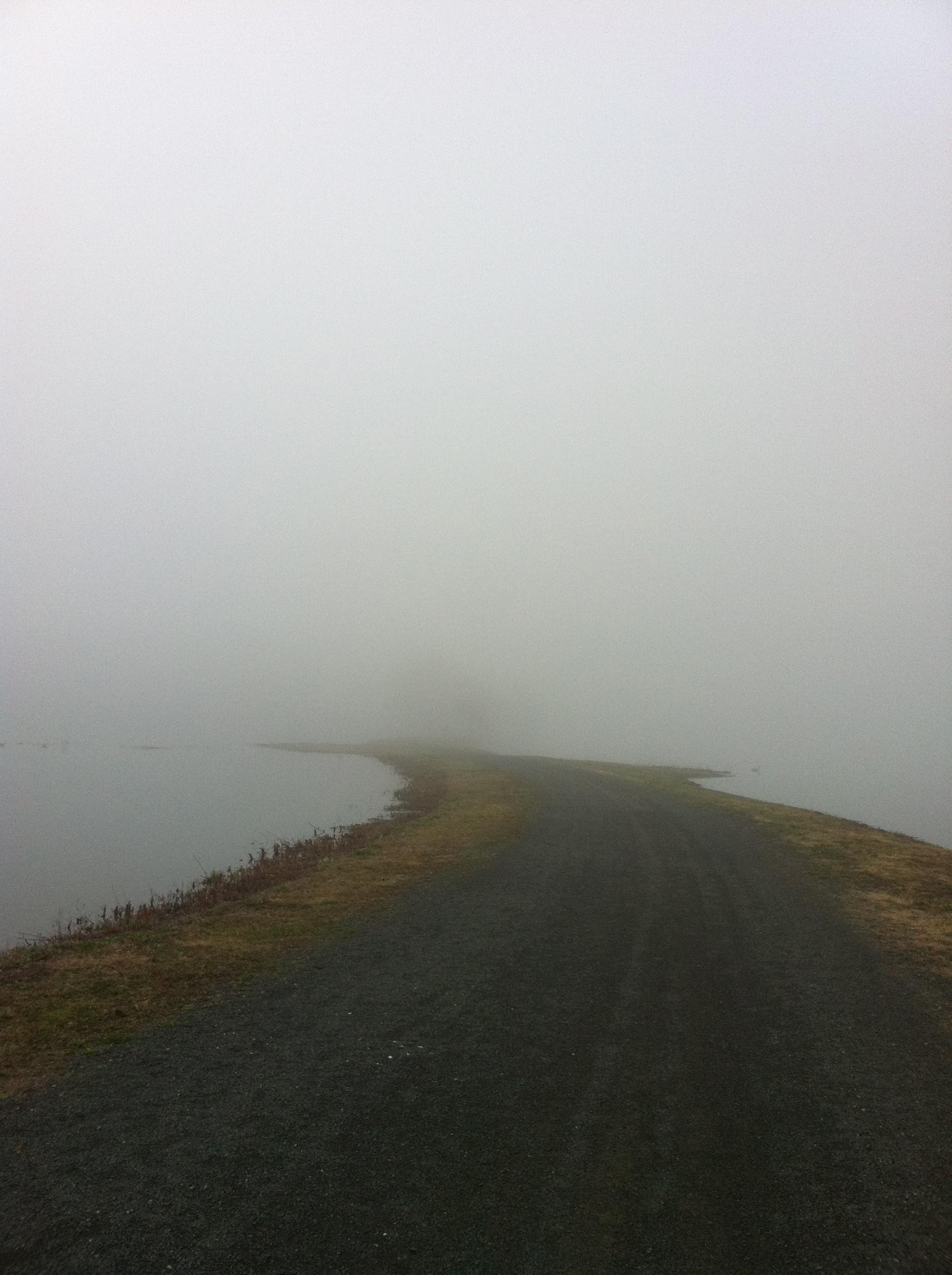 I went for a sluggish four mile run right after work. It was really foggy and misty.