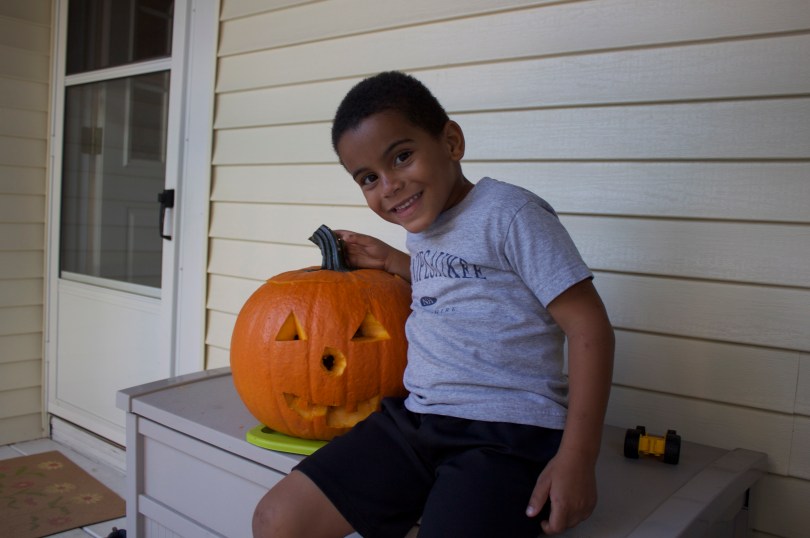Carlos and his auntie carved a jack-o-lantern yesterday while I baked oatmeal cookies for Carlos’ school bake sale.