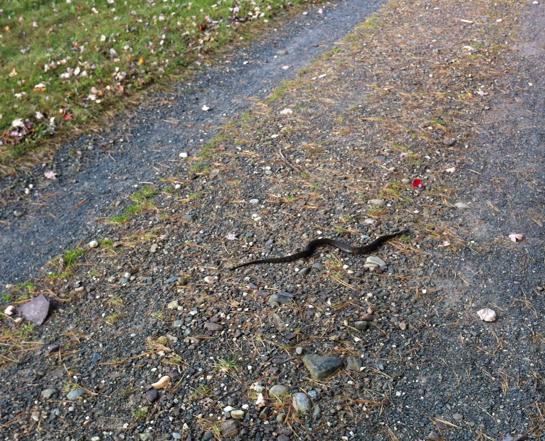 I zoomed in to get a photo so I was quite a distance away. The snake scurried off into the woods.