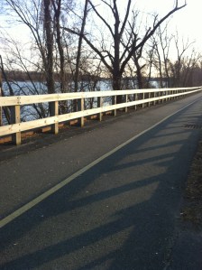 • Kaye I think the trail is only a couple miles each way. It’s pretty though. My family all lives in Agawam so I’ve taken Carlos there before to ride his bike and then we go to the School Street playground. I ran from my aunt’s off of Silver Street to Main Street, down School Street then follow the bike trail to Leonard Street and back up Main.