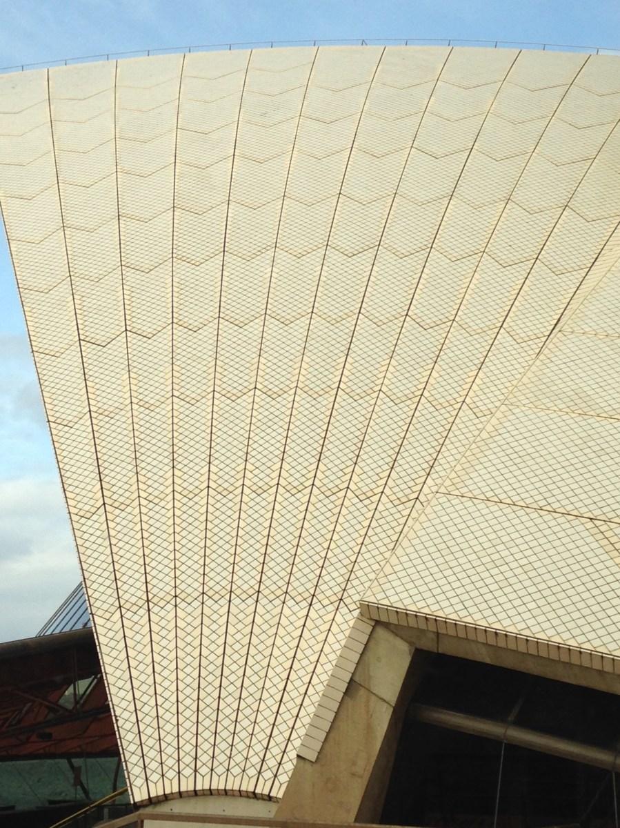 Self cleaning tiles Published August 8, 2014 at 2448 × 3264 in Australian adventure: Day 1 ← Previous Next → Self cleaning tiles that line the “sails” of the Opera House