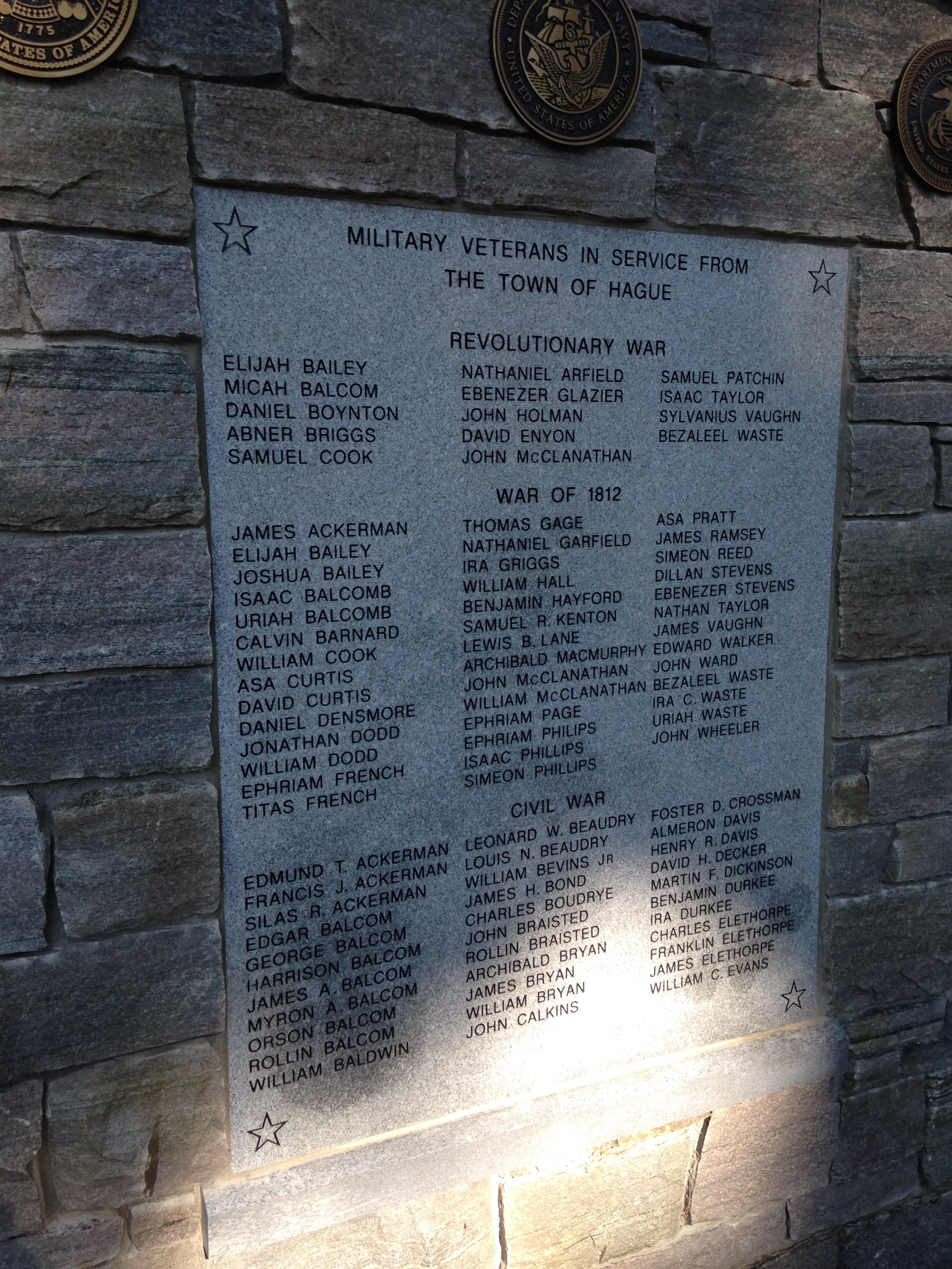After the hike we took a short walk into Hague where we were told we might encounter coffee. First we came across a wall dedicated to war veterans from the town of Hague. It goes all the way back to the Revolutionary War.
