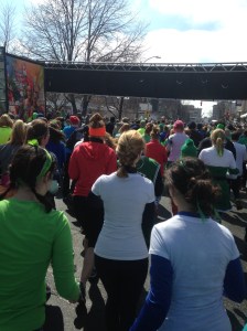 I made it home with just enough time to take a quick shower so I didn’t offend my friends during the race! We might as well just walked from my house to the start of the race which is about a mile and a half away because we had to park almost a mile away. This race is huge. It was my fourth year running it and by far the most enjoyable. I wasn’t wearing headphones so I could hear the roar of the insane mass of spectators along almost the entire course. I stayed with two of my friends the entire way. There was a group of 5 of us running, but two shot ahead at the beginning and just ran with it.