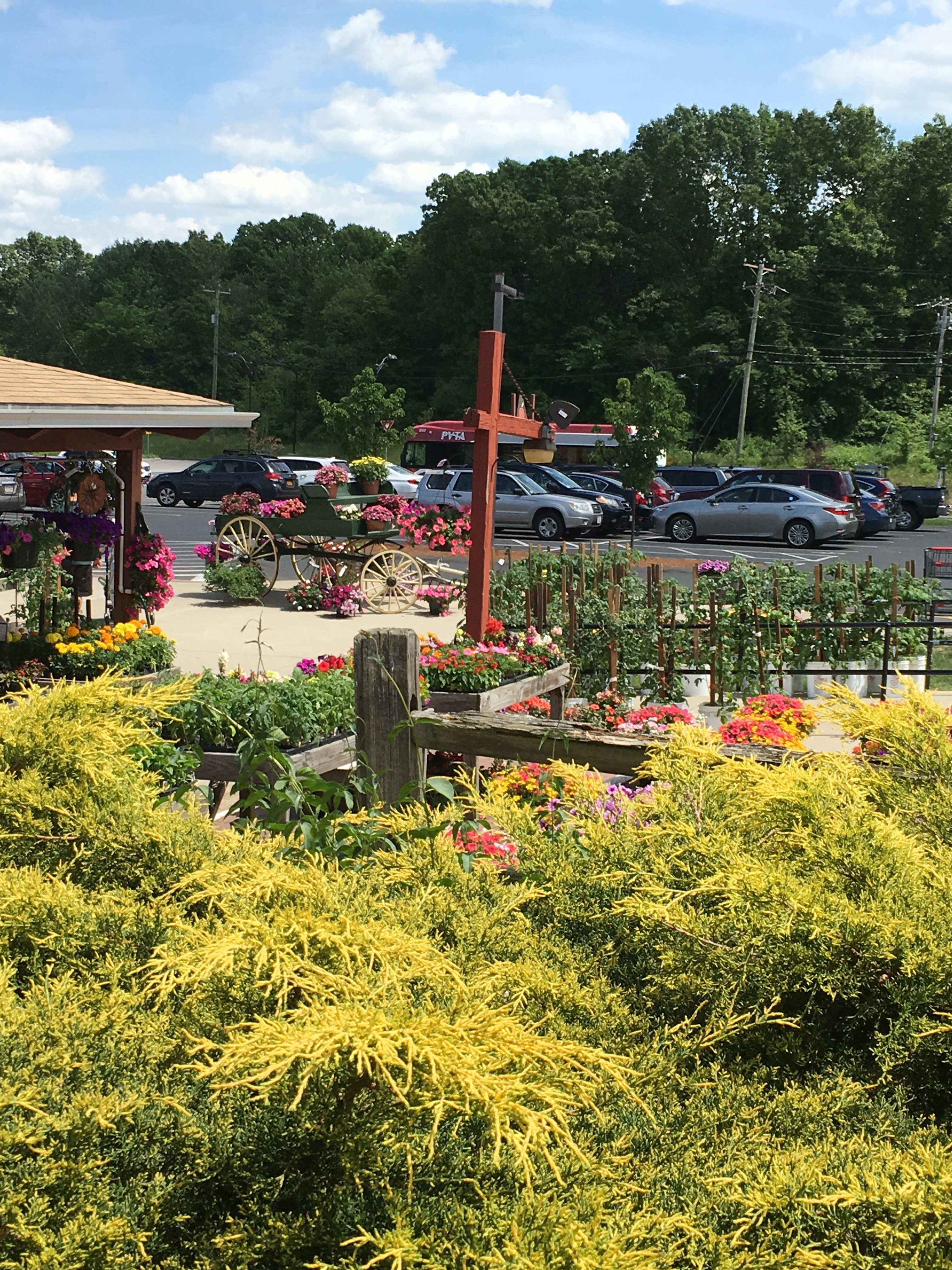 1:15 Lunch at Atkins Farm salad bar. Lettuce, cauliflower, cucumber, wheat berries, chick peas, kale/apple mix, tabbouleh, balsamic vinegar.