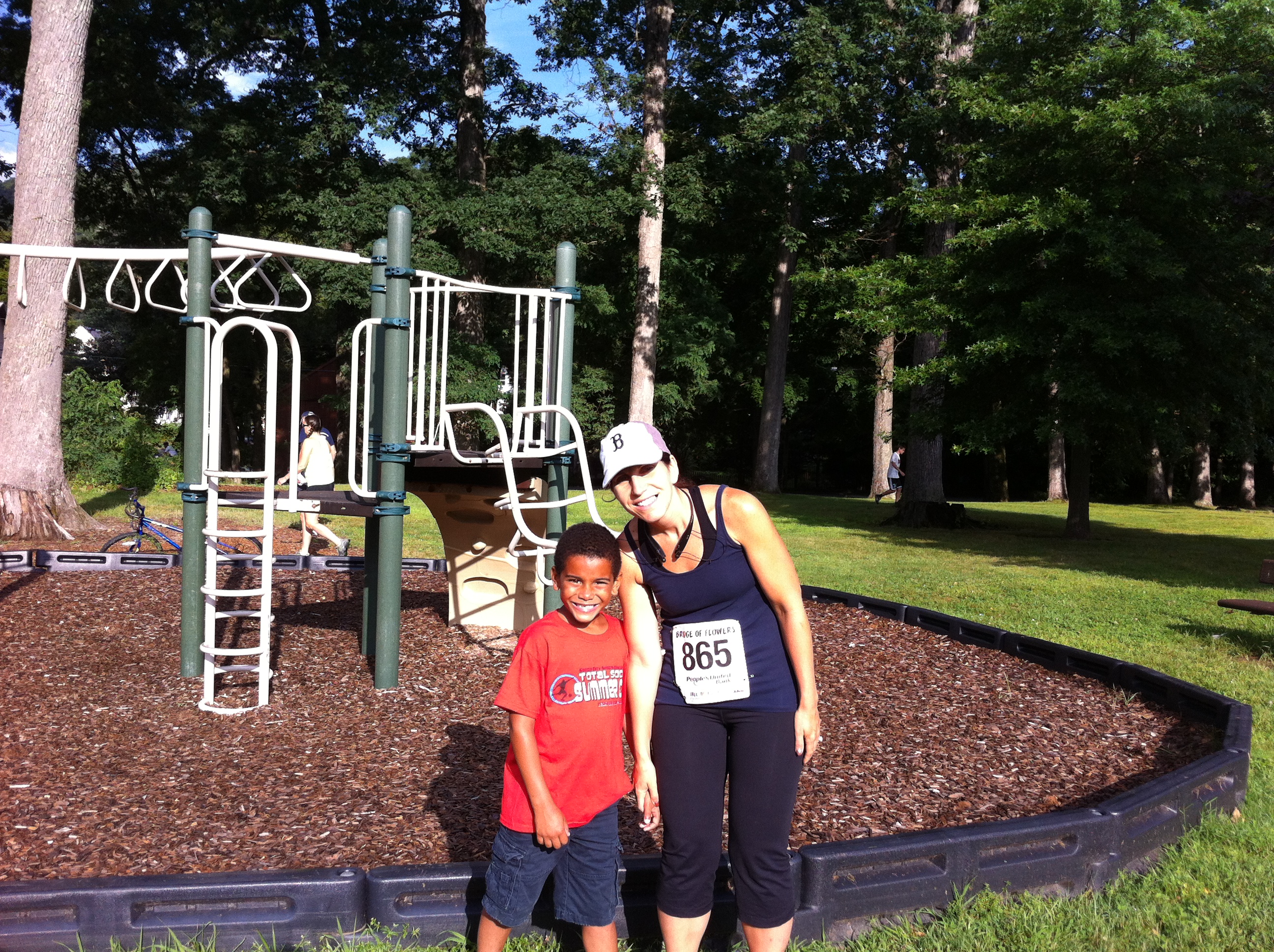 My only goal was to finish the race. After the National Anthem and the sound of the gun, we began to move toward the starting line. I was so overwhelmed with emotion; I could feel my eyes welling up with tears. But then, as I fell into pace with the rest of the runners, I felt my confidence soar. Around mile two, the course begins a slow steady uphill climb. A nice gentleman talked me through it and when I reached the crest, it was downhill the rest of the way, and I knew I was going to make it. For the last half mile, I couldn’t help laughing with the sheer joy of it. I saw my son and husband in the crowd, cheering me on, and I couldn’t stop smiling. I never felt more proud of myself when I crossed that finish line. From that day on, I was completely hooked on running, and I couldn’t wait to do it again!