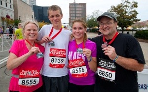(Me, my son Kevin, my step daughter Maggie, and my husband Larry, at the Rock & Roll Cleveland Half Marathon)